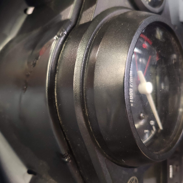 Bonjour à tous, je viens de m'apercevoir en regardant de plus près mon tableau de bord, que des traces de déformations apparaissaient au-dessus du compte tour. J'ai tout de suite pensé à un fil en court-circuit qui chauffe en dessous et fait fondre le plastique, mais il semblerait que cela soit du au changement de ma bulle.